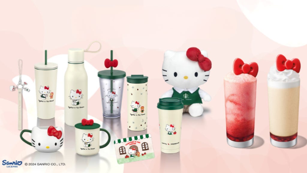 Tsuji also understood that nostalgia thrives on ubiquity. Under his leadership, Sanrio doubled down on strategic collaborations with brands that had nothing to do with kawaii but everything to do with staying visible. Starbucks, the LA Dodgers, and countless other partnerships weren’t about shared values but market penetration.